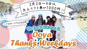 2/2~6の平日5日間は、大人リフト券全員1000円!!
