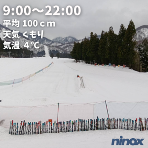 | 滑走状況 | 全面可能[◎] | 天気 | 小雪 | 気温 | 1℃ | 雪質 | 湿雪 | 積雪 | 150cm |