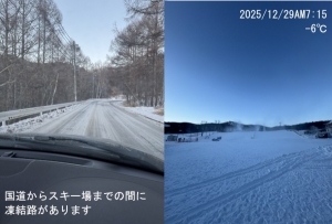 | 滑走状態 | 一部可能[△] | 天気 | 晴 | 気温 | -4℃ | 雪質 | 人工雪 | 積雪 | 30cm |